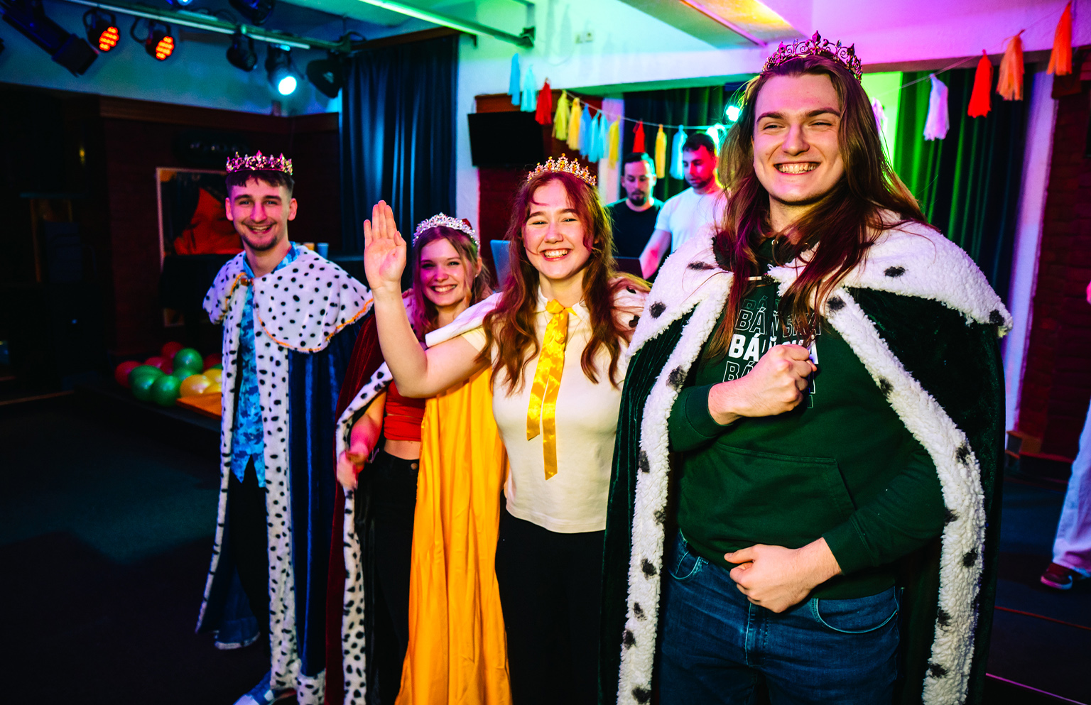 Hrát nám bude DJ MIKEE a dále se můžete těšit na nabité bary a na večerem plných her pro naše kandidáty na Krále a Královnu a Prince a Princeznu Majálesu 2026